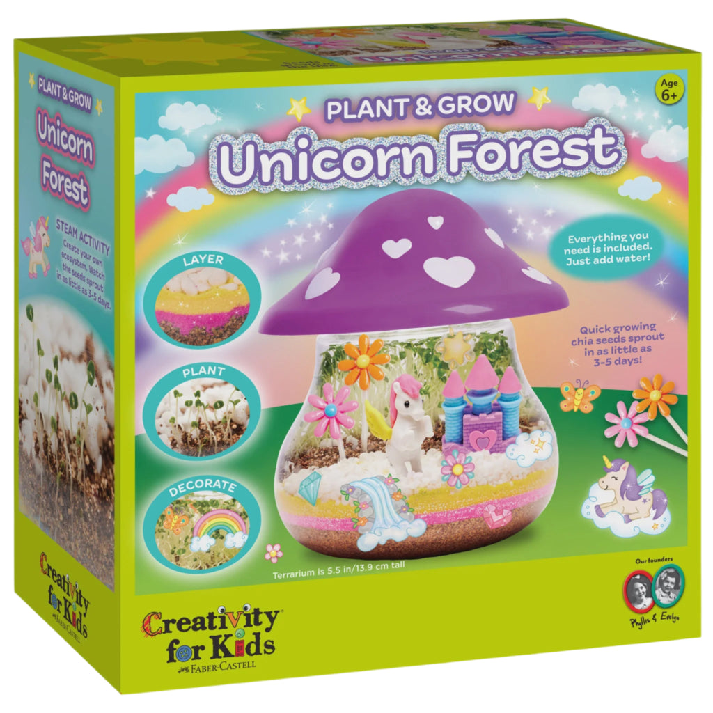 Create an enchanted unicorn forest with the Plant and Grow Unicorn Forest kit! Foster a love of nature with these whimsical terrarium crafts for kids. Plant & Grow terrarium kits come ready to decorate, plant and grow. With non-toxic and safety tested components, everything you need to create your own indoor unicorn garden is included. Just add water! For Ages 6 and up. WARNING: CHOKING HAZARD - Small Parts. Not for children under 3yrs.