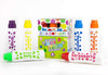 The original dot markers that kids love just got sweeter! Do-A-Dot Juicy Fruits Scented dot markers come with 6 smell good flavors. Strawberry, Orange, Lemon, Green Apple, Blueberry, and Grape! Each dot marker not only smells amazing, but the colors are the bold and bright. With generous 2.5 ounce bottles Do A Dot Art! makers have more paint per bottle than other dot markers. Do A Dot Art! markers have a patented large sponge tip dauber engineered to be mess free, never dry out, and make a perfect dot every time. Kids love mixing, blending and layering colors to create their own masterpieces! Just twist off the cap and let the creativity begin. WARNING: CHOKING HAZARD - Small Parts. Not for children under 3yrs.