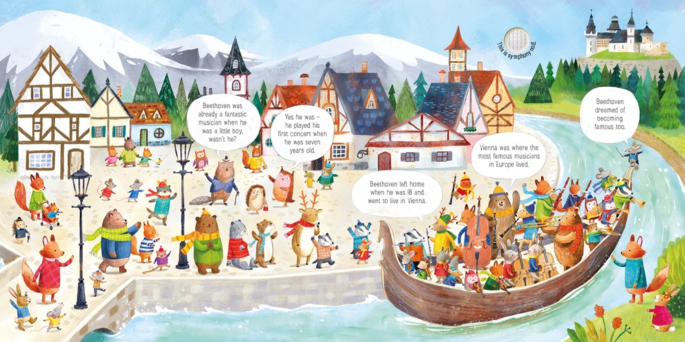 Children can discover the magic of Beethoven by pressing the buttons in this enchanting sound book. The animal orchestra travels through the animal world playing five different pieces of Beethoven's music and telling the other animals a little bit about the extraordinary man who wrote them. The beautiful illustrations and spellbinding music are a perfect introduction to one of the greatest composers of all time. For Ages 3 and up. WARNING: CHOKING HAZARD - Small Parts. Not for children under 3yrs.