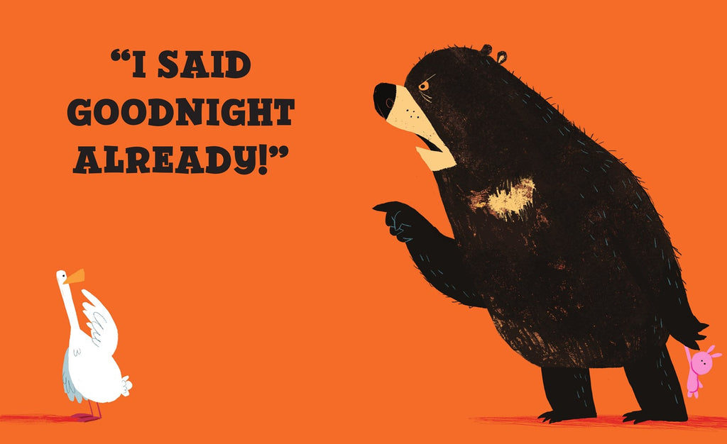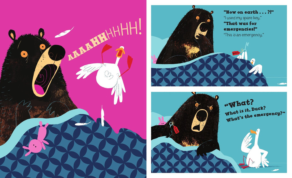 Bear can’t wait to go to sleep. He’s exhausted, but his persistent next door neighbor, Duck, is wide awake and wants to hang out. Each time Bear is just about to fall asleep, Duck comes back with some great plans. Will Bear ever be able to catch some z’s? For Ages 4 and up.