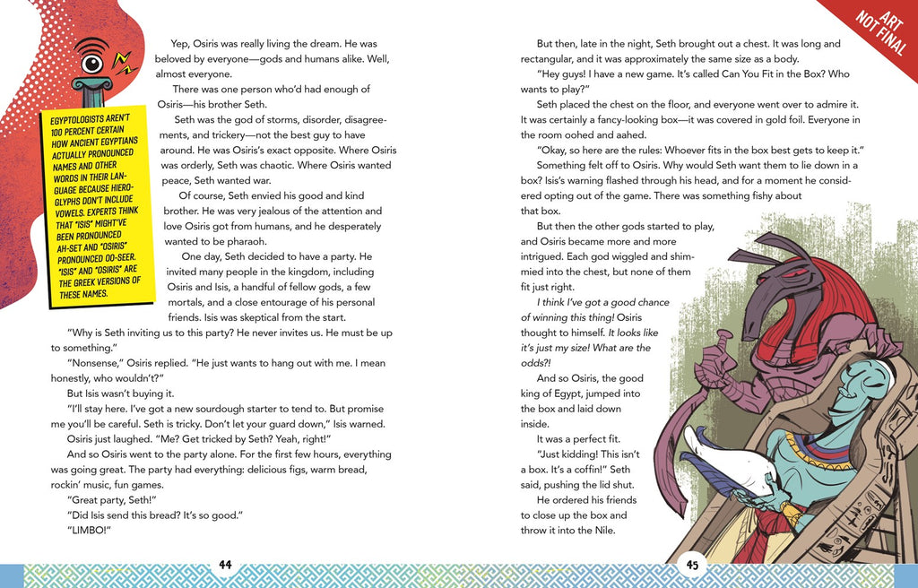 Venture to the edge of life itself from the safety of your living room! In these stories, you’ll encounter a very ill-advised bid to kidnap the queen of the Underworld, an Egyptian god of death who weighs your heart against a feather, the treacherous and winding road to the Norse afterlife, and much more. Tales of fearsome gods, fantastical monsters, and literally death-defying heroes of the spirit world are told in the hilarious, kid-friendly voice that’s sent the Greeking Out podcast to the top of the charts.