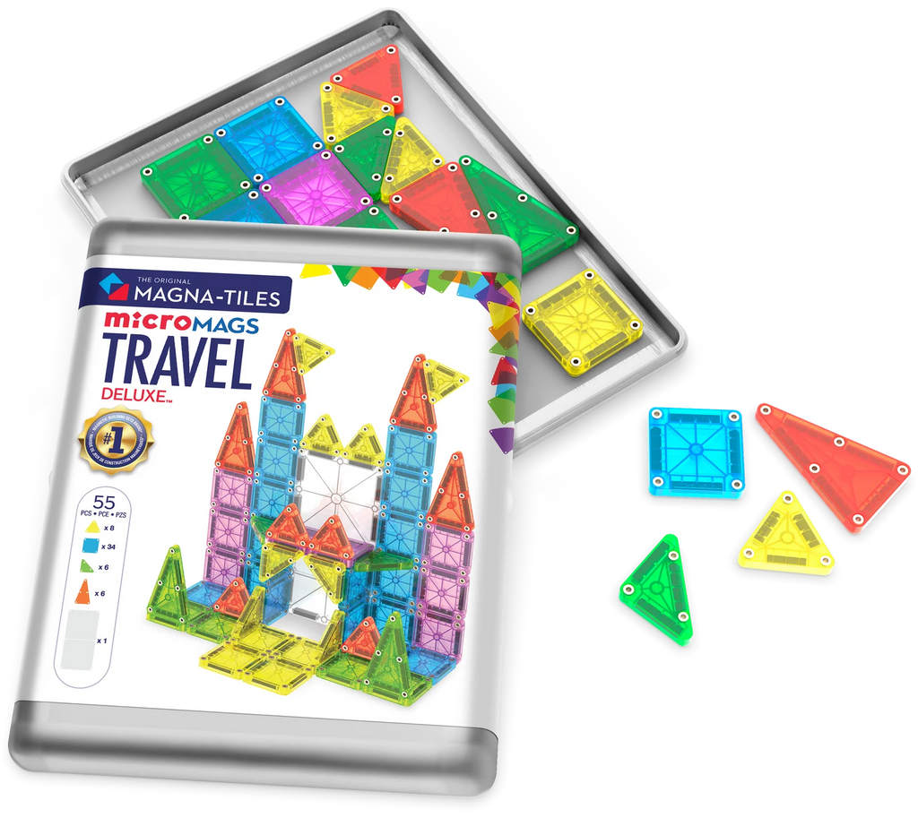 Designed with signature safety features like fastening rivets and lattice design, the Travel Set keeps playtime secure while enhancing fine motor skills, problem-solving, and hands-on STEAM learning. Bigger, better, and ready for adventure, the microMAGS Travel Set Deluxe 55-Piece Set is your ultimate companion for imaginative fun on the go! For Ages 3 and up. WARNING: CHOKING HAZARD - Small Parts. Not for children under 3yrs.
