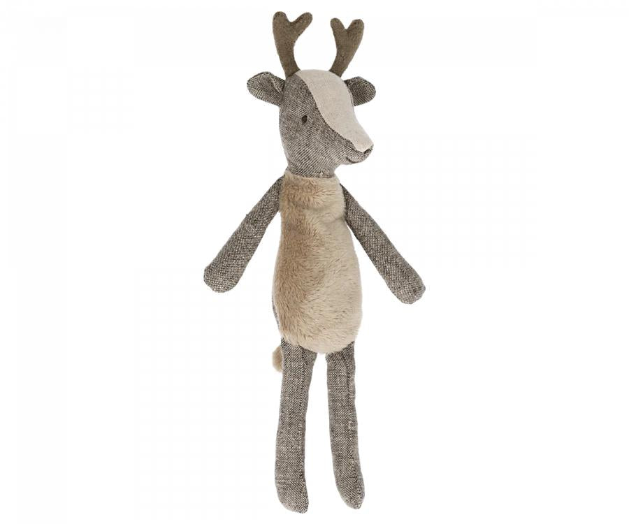 A sweet and adorable deer father. He lives in the small Gingerbread house with the rest of the deer family. Deer father is the tallest in the family and he has a very soft, furry belly. His tail is fuzzy like the rest of the family's, and his antlers are nice and soft faux suede. For Ages 3 and up. WARNING: CHOKING HAZARD - Small Parts. Not for children under 3yrs.