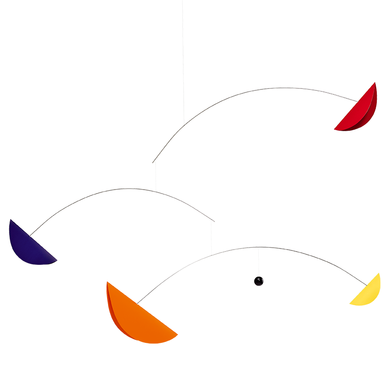 Though colourful this mobile will bring calmness to your home. Displayed over your bed it will furnish your dreams with inspiration. 80x40in. Designed by Ole Flensted. Made in Denmark.