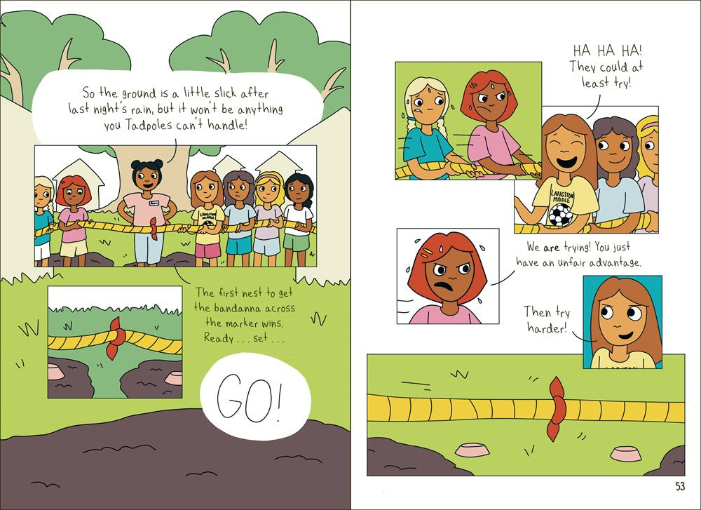 A frenemies-to-friends graphic novel about the trials and tribulations of three twelve-year-old girls and cabinmates at sleepaway camp. Perfect for fans of Guts and Real Friends!