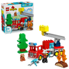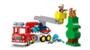 Fuel fun rescue pretend play for toddlers ages 2+ with LEGO® DUPLO® Town Fire Truck with Hose and Firefighter (10473) emergency vehicle toy. This fire truck toy is packed with features, such as a flexible hose, a tree and a LEGO DUPLO squirrel figure. This educational toy can help toddlers develop preschool skills. They can grow emotional intelligence as they build empathy imagining what it’s like being a brave firefighter working hard to help others. The LEGO DUPLO fire truck model is packedwith fun features to spark creative rescue stories. It has a hinged ladder and a transparent LEGO DUPLO brick water tank. Budding firefighters can pretend to attach the hose to this to put out the fire. Toddlers also develop fine motor skills, transforming the fire truck so that its trailer becomes articulated, making it easier to drive around corners. Set contains 28 pieces. For Ages 2 and up.