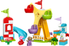 Fill playtimes with dynamic fun and adventure with the LEGO® DUPLO® Peppa Pig Funfair (10453) toddler toy. Preschoolers aged 2 plus pretend-play a day at an amusement park in the company of recognizable toy characters from their favorite show. They’ll love to send the Peppa Pig, Candy Cat and Danny Dog figures spinning as they push this preschool playset’s rotating Ferris wheel. Then they can play out taking turns to whiz down the slide toy.