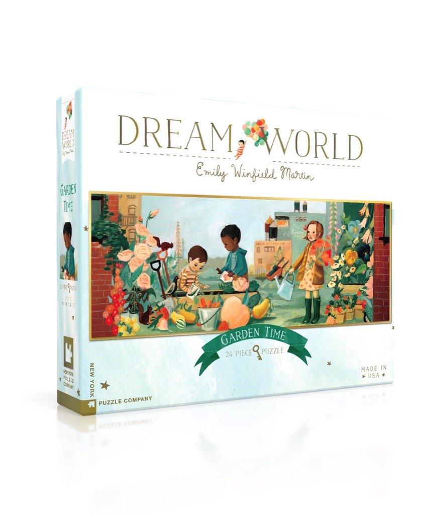 From American artist Emily Winfield Martin's Dream World, city children work together to add to their lush and tranquil green space. Made in the USA. For ages 3 and up.