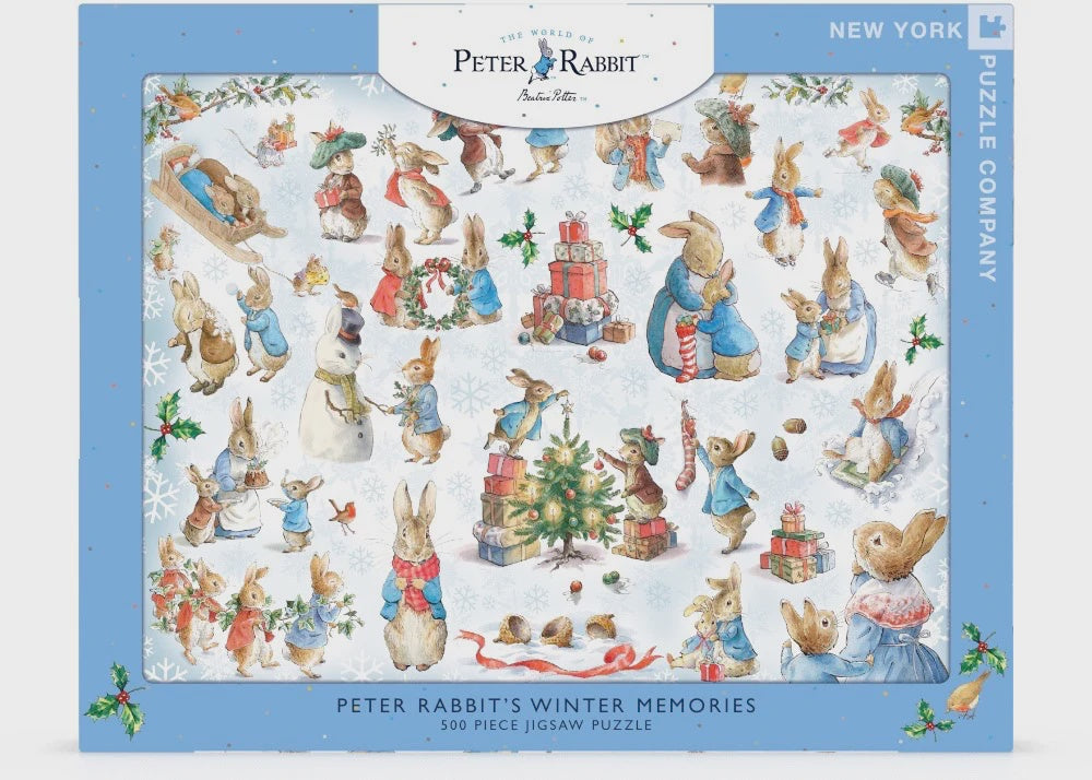 Celebrate the magic of the season with Winter Memories a delightful 500 piece puzzle featuring the beloved illustrations of Beatrix Potter. This enchanting Christmas scene showcases festive rabbits and woodland animals joyfully trimming the tree and adorning their home with holiday decorations. Enjoy the timeless charm and warmth of Potter's classic art as you piece together this delightful holiday tableau.