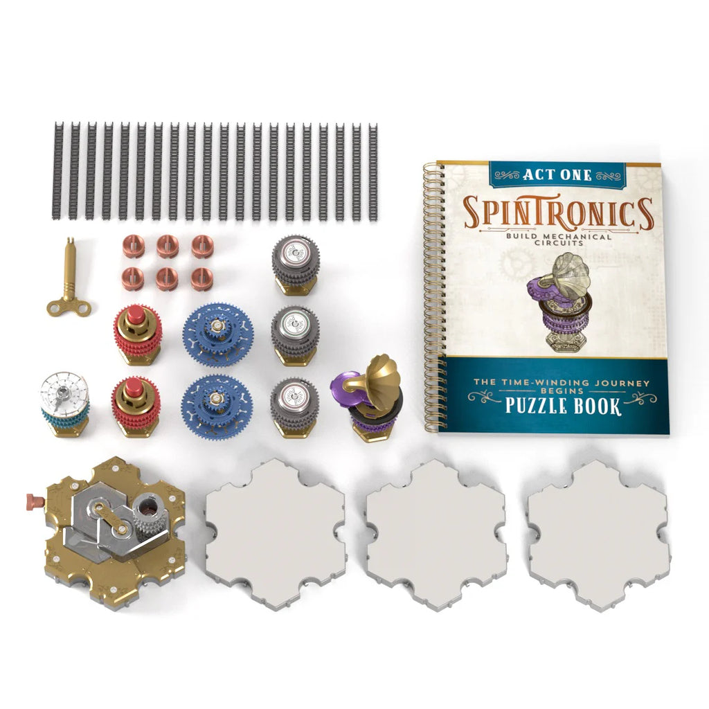Begin the time-winding journey with Spintronics Act One. Get started building fascinating mechanical circuits as you solve 67 fun, challenging puzzles from beginner to intermediate difficulty.