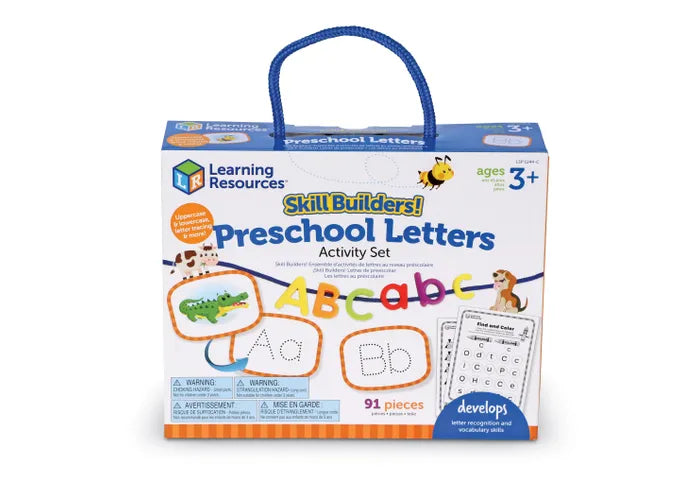 Play your way to preschool-ready skills with these fun, quick activities! This 91-piece set's hands-on activities help kids learn and retain lessons in letter tracing, uppercase, and lowercase, and other preschool language skills through fun, active play. Plus, the built-in carrying case lets you take the learning on the go! For Ages 3 and up. WARNING: CHOKING HAZARD - Small Parts. Not for children under 3yrs.