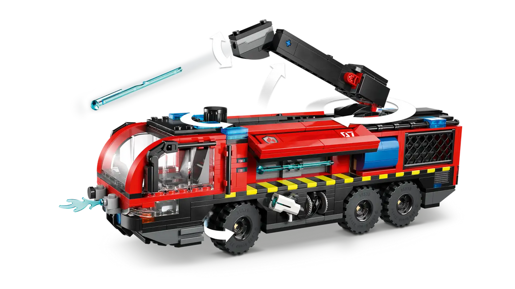 Mobilize the LEGO® City Airport Fire Truck (60499) for kids ages 7 and up. This realistic emergency vehicle toy features a 360° rooftop extinguisher, opening side equipment bays and tool storage compartments. Kids can turn a dial to steer the truck, launch water elements from the extinguisher and remove the engine for repairs. The toy truck comes with 8 chunky rubber tires and a detailed cockpit with seating for the 4 firefighter minifigures. Just add a sprinkle of imagination to ignite hours of heroic firefighting adventures. This toy truck building set makes a great birthday or any-day gift for kids with a passion for hands-on play. Use it with other LEGO City sets (sold separately) for even bigger adventures. Kids can build with confidence using the LEGO Builder app where they can zoom, rotate in 3D and track progress with easy-to-follow digital instructions. Set contains 691 pieces. For Ages 7 and up. WARNING: CHOKING HAZARD - Small Parts. Not for children under 3yrs.