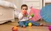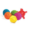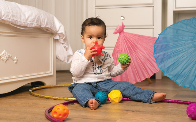 Brightly colored tactile balls bring soothing relief to little gums at every teething phase (infancy – 33 months) and also invite babies to grasp them, roll them and crawl after them. Suitable from birth.