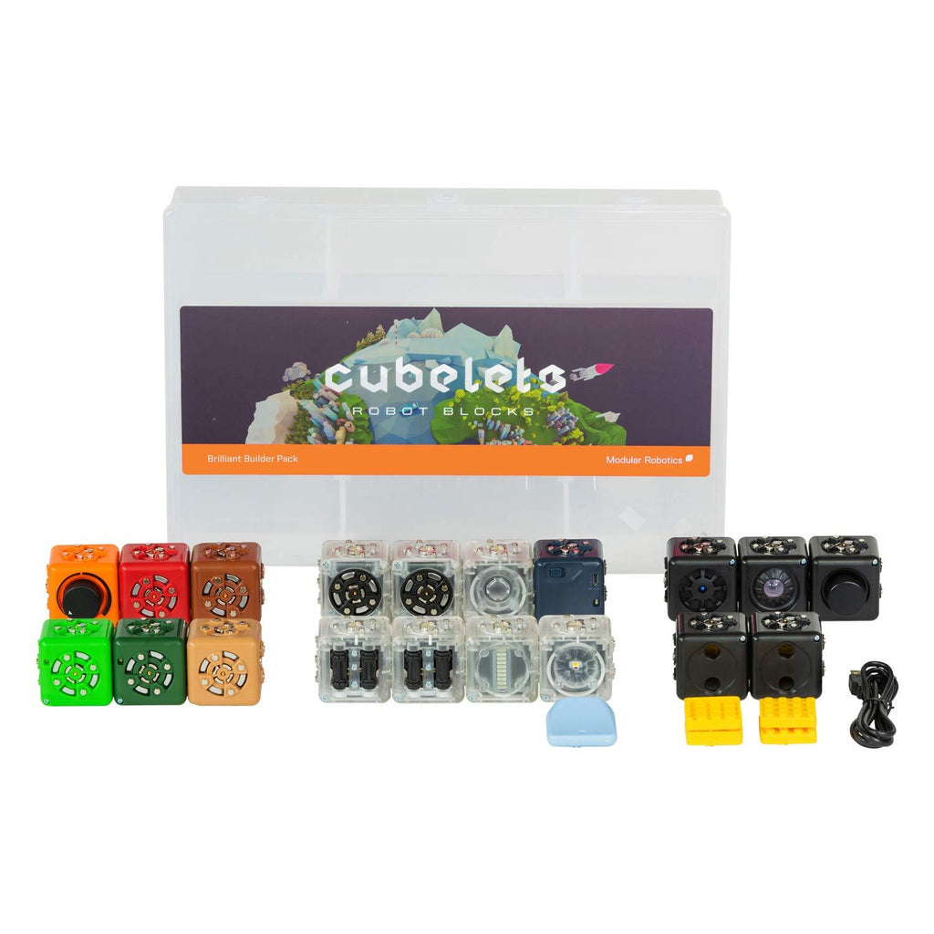 Cubelets Brilliant Builder Kit is the perfect tool to deeply investigate robotics. Cubelets are a groundbreaking robot construction system designed for budding innovators ages four and up. Cubelets were designed to teach the big lessons behind complex systems, design thinking, and emergence with tiny robots. Cubelets Twenty comes complete with everything inventors, young and old, need to build thousands and thousands of interactive robots. Instead of programming your robot's behavior, you snap the Cubelets together and watch the behavior emerge like with a flock of birds or a swarm of bees. WARNING: CHOKING HAZARD - Small Parts. Not for children under 3yrs.
