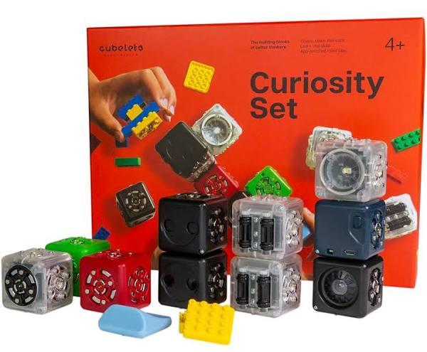 Build, learn, and create more with the Cubelets Curiosity Set. Open a box of little robot blocks that will intrigue, fascinate, and inspire builders for hours on end. You’ve never seen building blocks like these. Cubelets make it easier than ever to explore robotics, coding, and other big ideas. Make more robots with the Curiosity Set. The Cubelets Curiosity Set expands your robot building horizons with 10 SENSE, THINK, and ACT Cubelets, as well as the Bluetooth Hat. Use the Bluetooth Hat to pair with the free iOS, Android, and FireOS compatible companion app to remote control robots or change the way your Cubelets behave. WARNING: CHOKING HAZARD - Small Parts. Not for children under 3yrs.