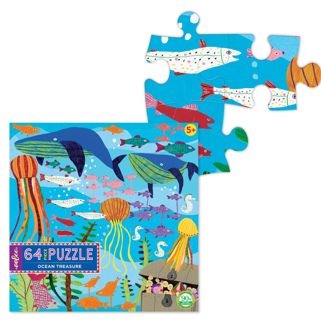 Explore the ocean’s depths and discover its treasures in eeBoo’s Ocean Treasure 64 Piece Puzzle, illustrated by Monika Forsberg. With large pieces this puzzle is perfect for children. Jigsaw Puzzles are a great activity for the whole family to enjoy. For ages 5 and up. WARNING: CHOKING HAZARD - Small Parts. Not for children under 3yrs.