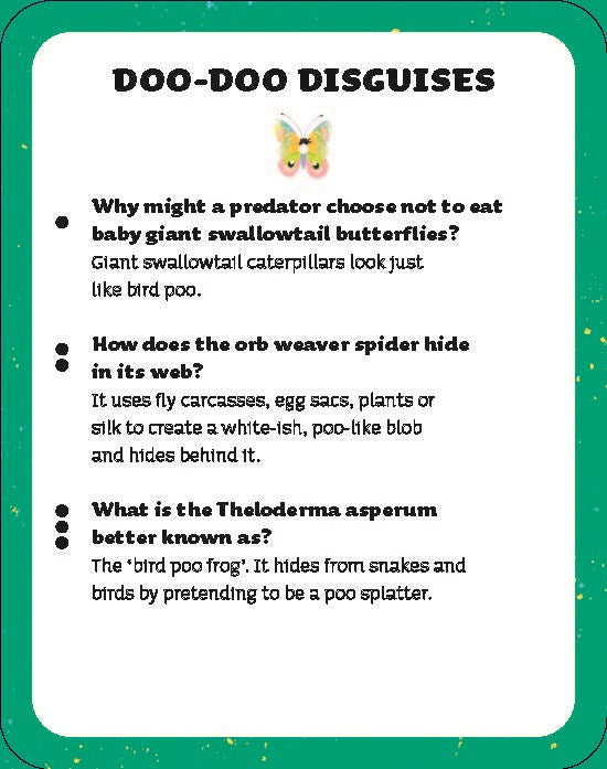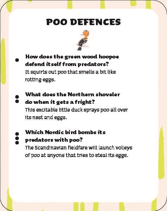 Brush up on your toilet trivia with this hilarious family-friendly quiz game! This sturdy box is bursting with 150 quiz questions about poop, such as: what do bat poop and fireworks have in common? What do you call a person who studies poop? And more! Do you know what bat poop has in common with fireworks? Ever wondered what you call a person who studies poop? Brush up on your toilet trivia with these family-friendly quiz cards all about the stinky stuff. Each card features an easy, medium, and hard question guaranteed to challenge even the most knowledgeable poop-head. For ages 6 and up.
